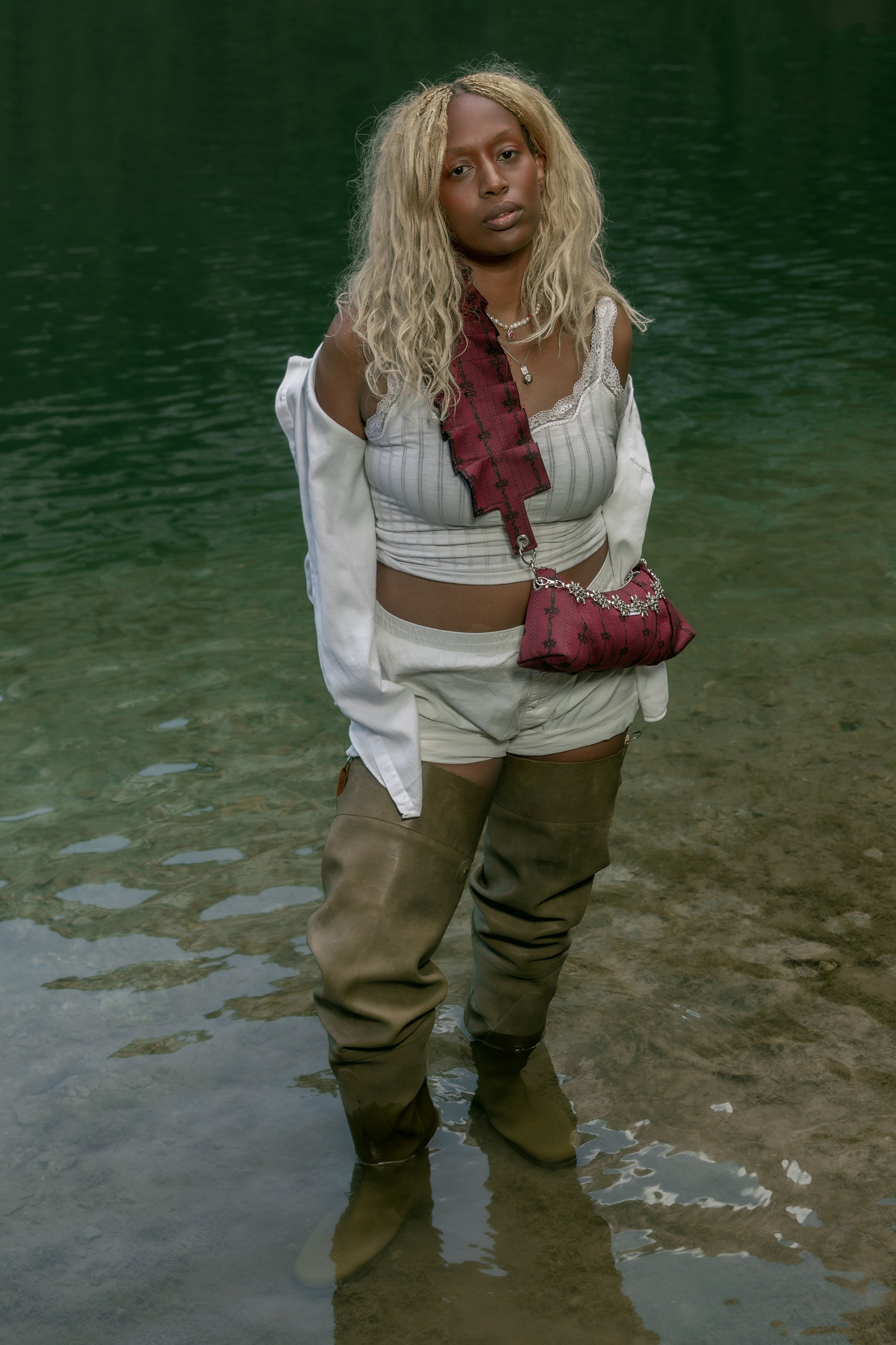 LE SAC FROU-FROU besticht durch ihren gerüschten Henkel und bietet durch zwei abnehmbare Metallringe auf jeder Seite der Tasche Spielraum in der Länge.